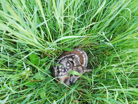 Jedes Jahr im Zeitraum von April bis Juli werden tausende Rehkitze und andere Wildtiere von Mähmaschinen bei der Mahd verletzt oder sogar getötet. Durch den angeborenen Drückinstinkt verhält sich das Kitz bei Gefahr ruhig und presst sich ganz nah an den Boden und wartet auf die Rückkehr der Ricke.